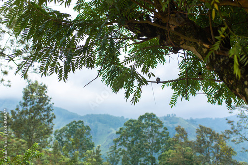 © Kate, Fototapeta premium A bird sits on a tree branch. Wild nature