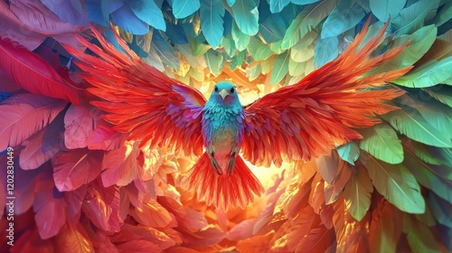 © xbzz, Fototapeta premium A bird soaring through a vivid colorful tunnel abstract art dynamic environment captivating viewpoint