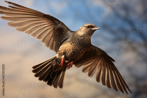 Obraz premium A bird soaring through the sky with its wings spread. Suitable for various uses.