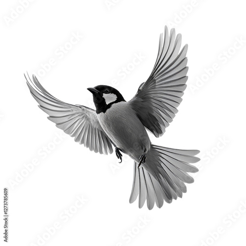 © tope007, Fototapeta premium A bird with black and white feathers flying in the air