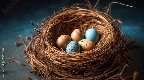 © ArtStage, Obraz premium A birds nest with eggs representing the concept of n AI generated illustration