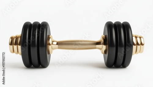 Fototapeta premium A black and gold dumbbell isolated on a white background.