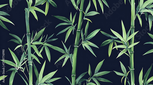 © เบญจมาภรณ์ โค้วตระกู, Fototapeta premium A black and green bamboo plant with green leaves