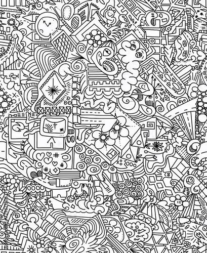 Fototapeta premium A black and white abstract hand-drawn drawing of chaotic shapes.Seamless...