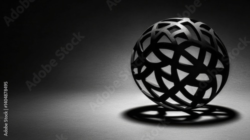 © Dmitry, Naklejka premium A black and white abstract sphere with a geometric pattern.