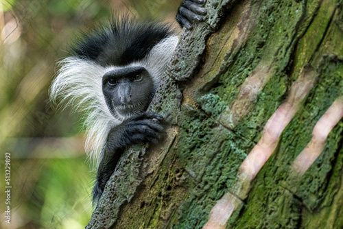 © Sebastian Rothwyn, Obraz premium A black-and-white Angolan Colobus monkey