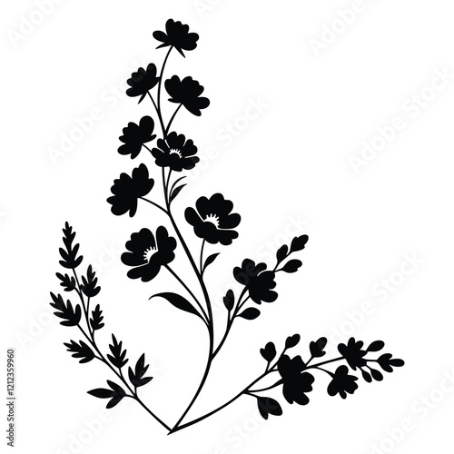 Naklejka premium A black and white beautiful spring flower collection vector and silhouette
