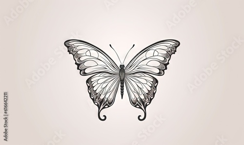 © Anna, Fototapeta premium a black and white butterfly on a light background with a shadow. generative ai
