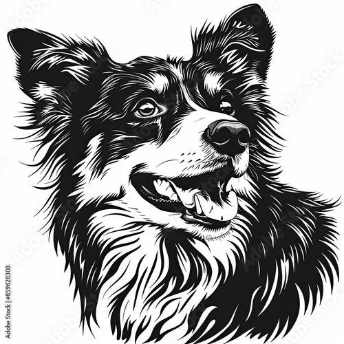 © MagnusCort, Naklejka premium A black and white drawing of a Border Collie dog