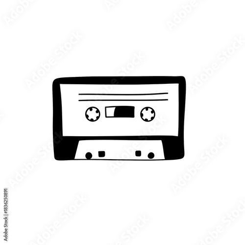 © jr-art, Obraz premium A black and white drawing of a cassette tape
