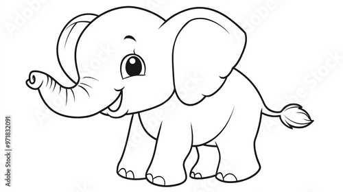 © Galib, Obraz premium A black and white drawing of a cute baby elephant.