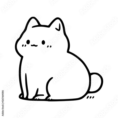© Zen20, Fototapeta premium a black and white drawing of a cute cartoon cat character