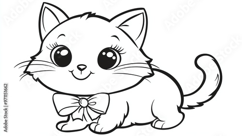 © Galib, Fototapeta premium A black and white drawing of a cute cartoon kitten.