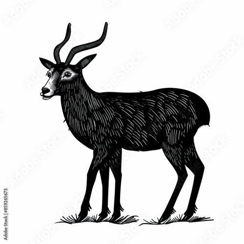 © MagnusCort, Obraz premium A black and white drawing of a deer with long horns
