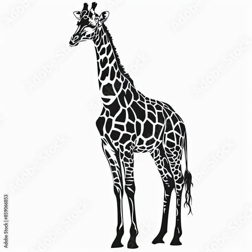 © MagnusCort, Fototapeta premium A black and white drawing of a giraffe on a white background