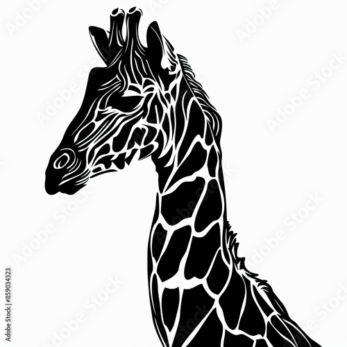 © MagnusCort, Naklejka premium A black and white drawing of a giraffe 's head and neck