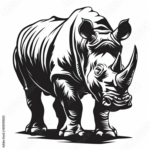© MagnusCort, Fototapeta premium A black and white drawing of a rhinoceros on a white background