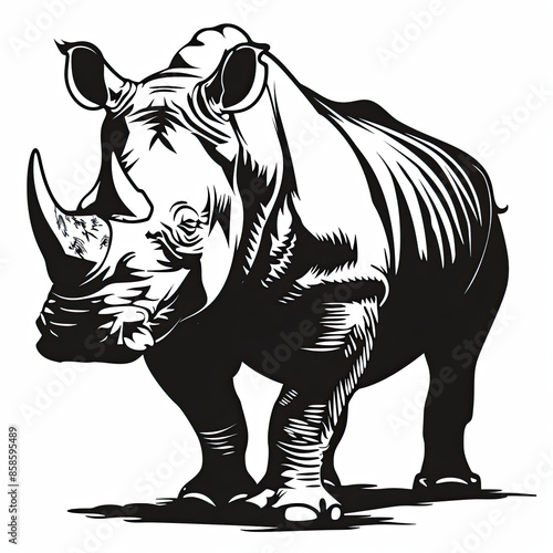 © MagnusCort, Fototapeta premium A black and white drawing of a rhinoceros on a white background