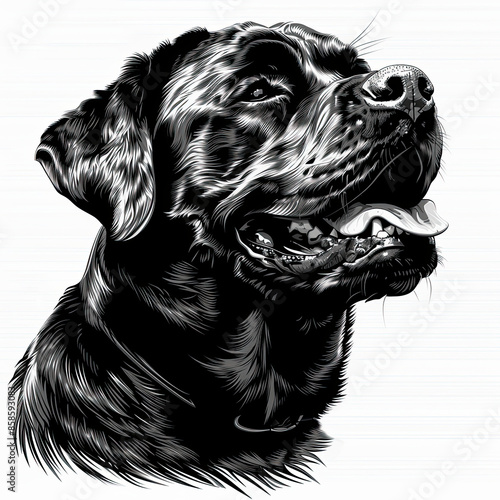 © MagnusCort, Obraz premium A black and white drawing of a rottweiler dog