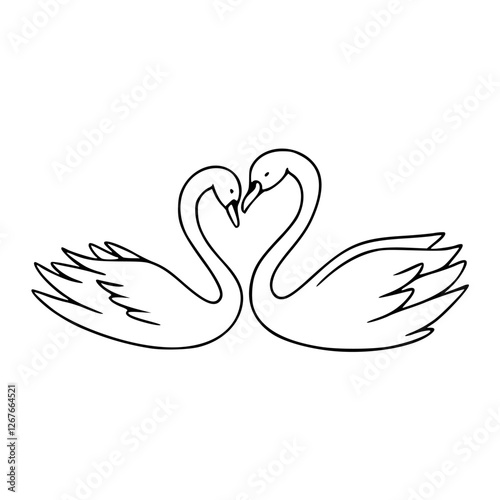 Fototapeta premium a black and white drawing of a swan couple vector for design element