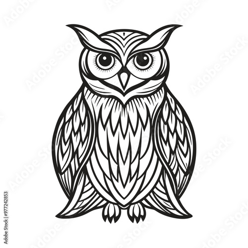 © TRTASFIQ, Fototapeta premium A black and white drawing of an owl with a black and white pattern