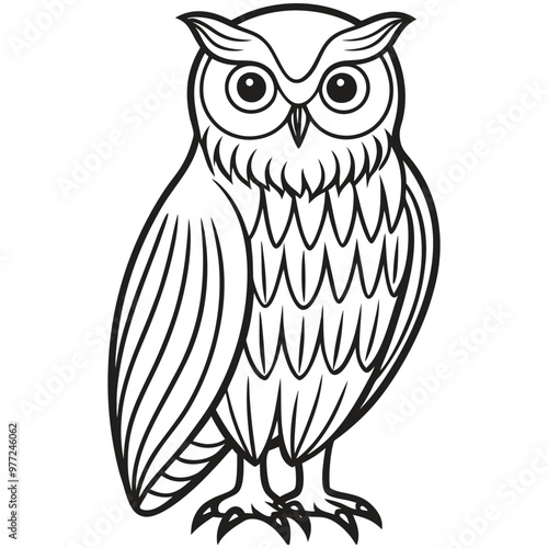 © TRTASFIQ, Fototapeta premium A black and white drawing of an owl with a black and white pattern