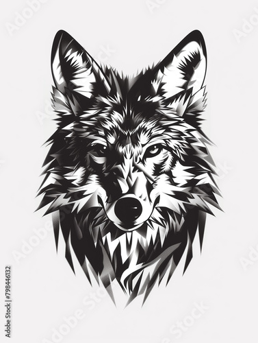 © Nathan Hutchcraft, Naklejka premium A Black and White Geometric Pattern of a Coyote Head on a White Background