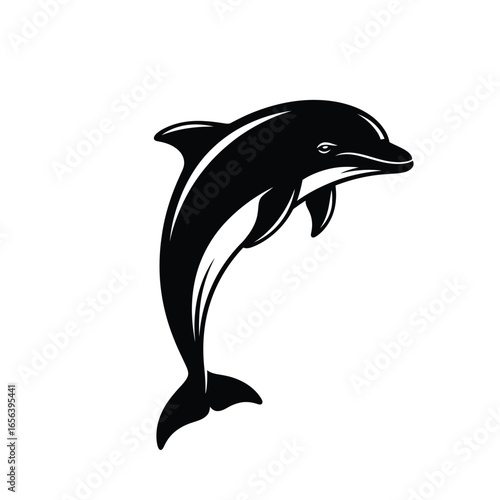Fototapeta premium A black and white illustration of a dolphin leaping upwards, isolated on a...