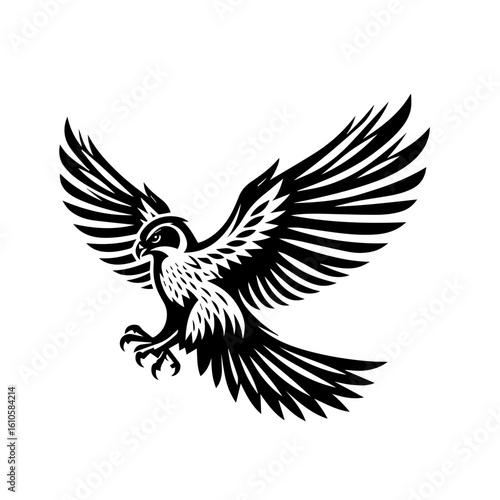© Md, Fototapeta premium A black and white illustration of a falcon in flight