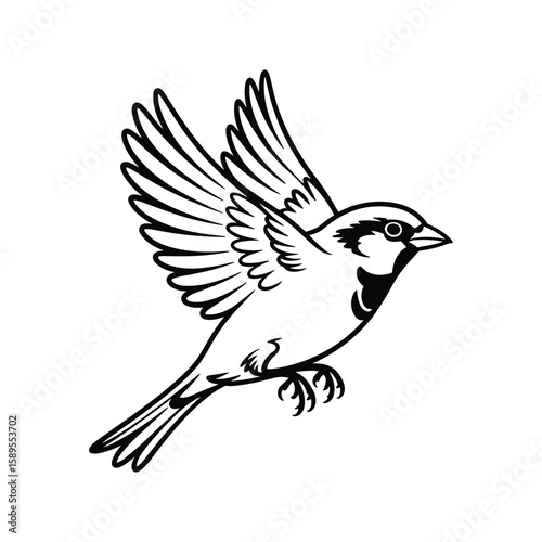 Fototapeta premium A black and white illustration of a sparrow in flight bird flying