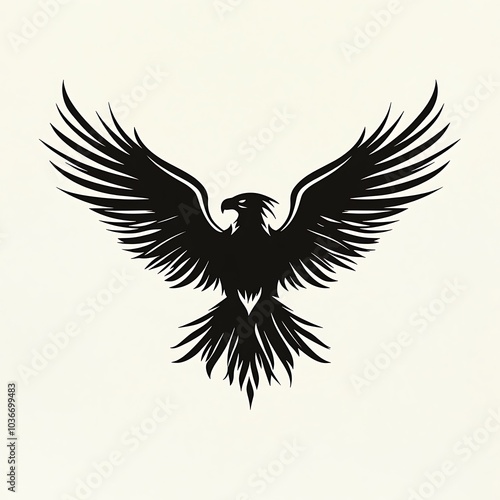 © Raffaza, Obraz premium A black and white illustration of an eagle with its wings spread wide.