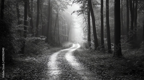© Galib, Fototapeta premium A black and white image of a forest path.