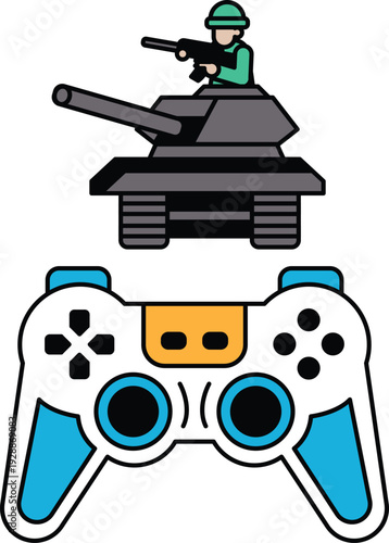 Fototapeta premium A black and white image of a soldier holding a gun and a tank