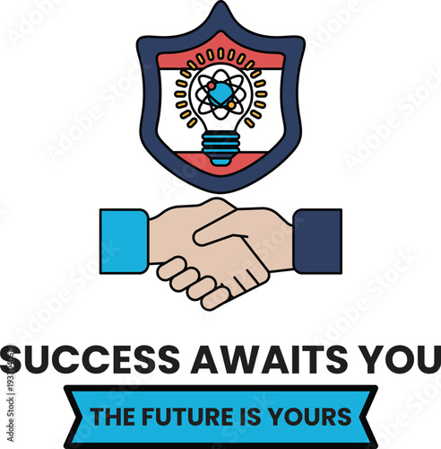 Fototapeta premium A black and white image of two hands shaking with the words "success awaits you"
