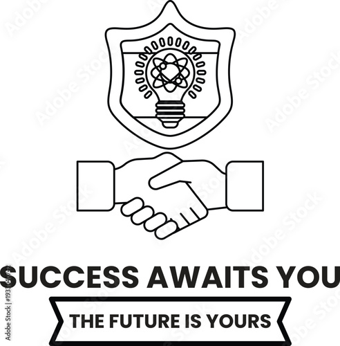Fototapeta premium A black and white image of two hands shaking with the words "success awaits you"