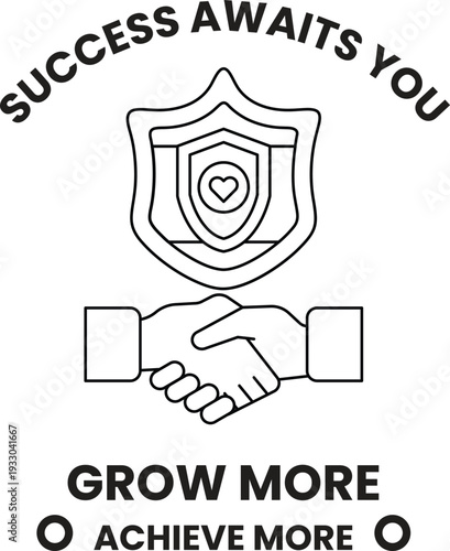 Fototapeta premium A black and white image of two hands shaking with the words "success awaits you"