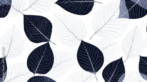 Obraz premium A black and white leaf pattern is shown on a white background. The leaves are...