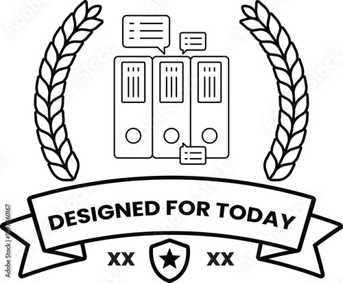 © toonsteb, Naklejka premium A black and white logo with a ribbon that says "designed for today"