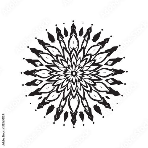 © Khadiza, Obraz premium A black and white mandala design isolated on white background radiates intricate floral patterns