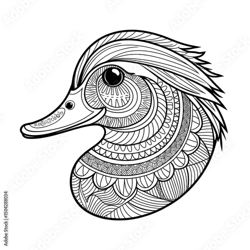 Fototapeta premium A black and white mandala duck design illustration line art of a coloring page