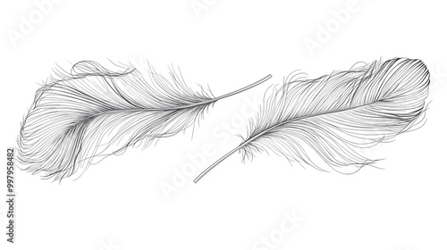 Obraz premium A black and white miniature feather isolated on transparent PNG.