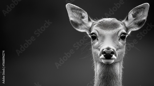 © Albert, Obraz premium A black and white photo of a deer's face