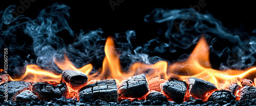 © HappyPic, Fototapeta premium A black and white photo of a fire with smoke and ash