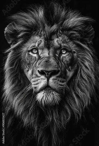© VISUAL BACKGROUND, Naklejka premium A black and white photo of a lion's face