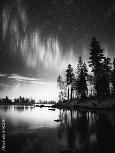 © vefimov, Fototapeta premium A black and white photograph of the night sky with stars and clouds