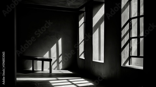 Fototapeta premium A Black and White Photographic Exploration of a Minimalist House with Generative AI