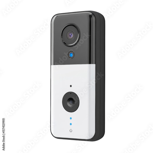 Obraz premium A black and white security camera with a blue light