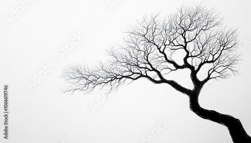 © TYNQ, Obraz premium A black and white silhouette of a bare tree branch against a white background.