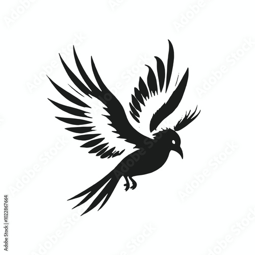 Fototapeta premium A black and white silhouette of a flying bird with outstretched wings