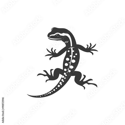 © NikahGeh, Naklejka premium A Black and White Silhouette of a Spotted Lizard